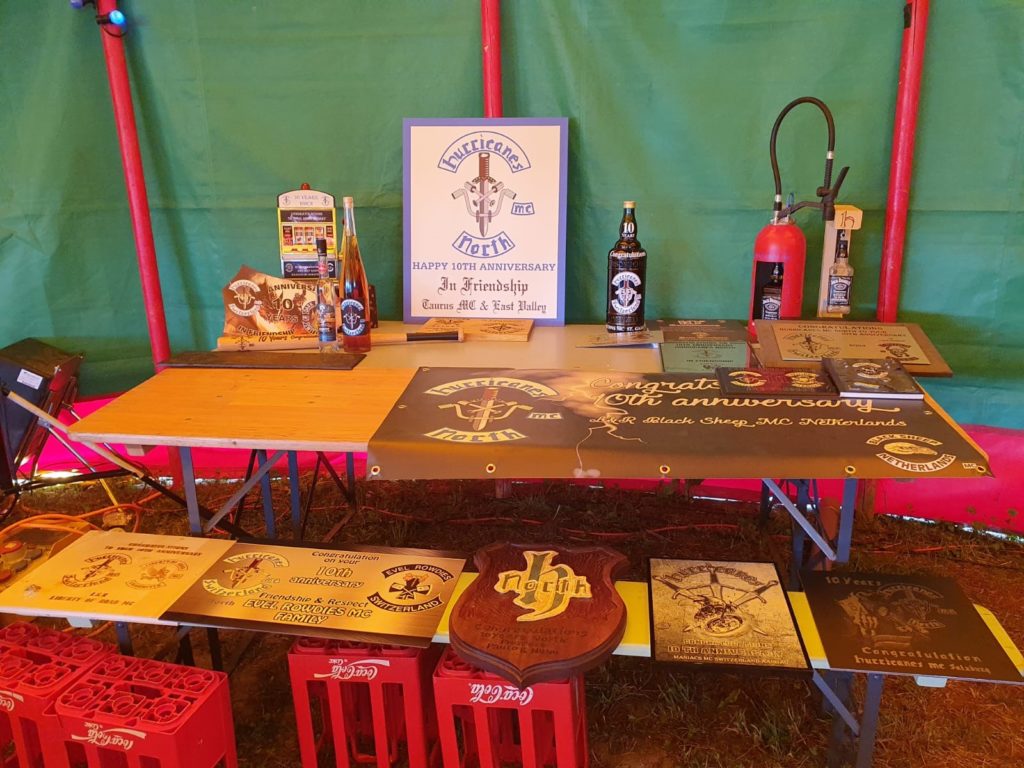 Anniversary 10 Ans Hurricanes North MC Samedi 24 juin 2023Deux membres du chapter 168 sont présents a cette manifestation pour remettre notre présent pour les 10 ans des Hurricanes North MC Similaire